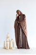 This open abaya is crafted from rich velvet infused with delicate glitter accents that catch the light with every movement.